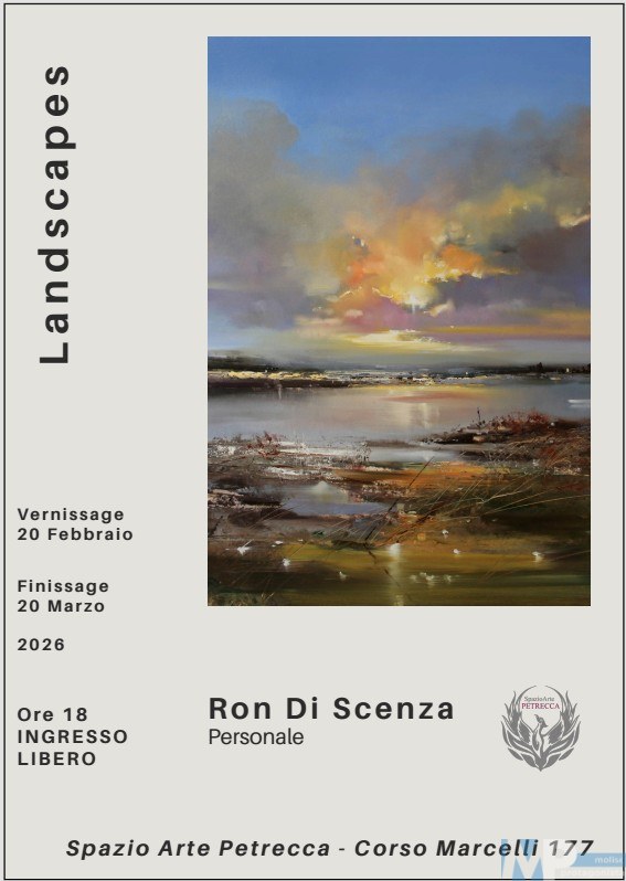La Galleria Spazio Arte Petrecca di Isernia presenta Landscapes, mostra personale del pittore italo americano Ron Di Scenza, in programma dal 20 febbraio al 20 marzo 2026, con direzione artistica di Gennaro Petrecca e curatela di Carmen D’Antonino, sotto il patrocinio del Comune di Isernia.